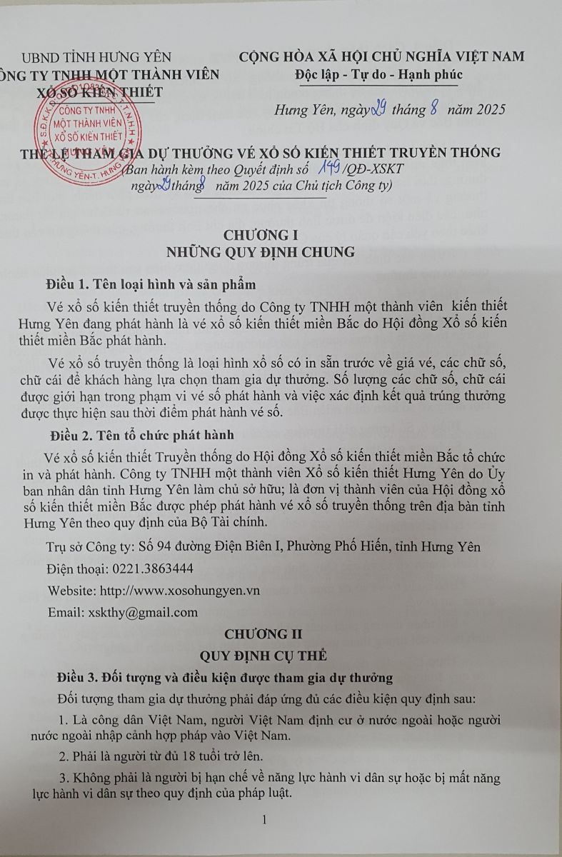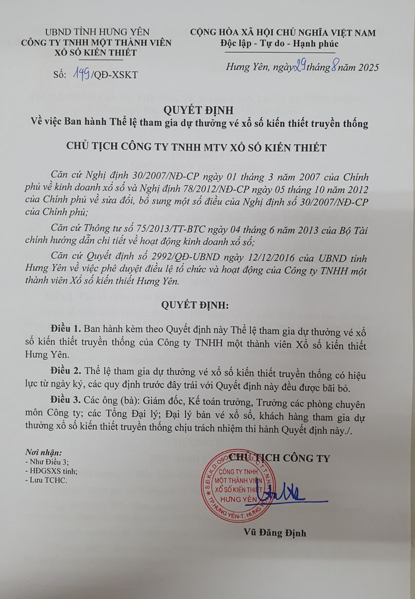 Quyết định v.v ban hành thể lệ tham gia dự thưởng vé xổ số kiến thiết truyền thống