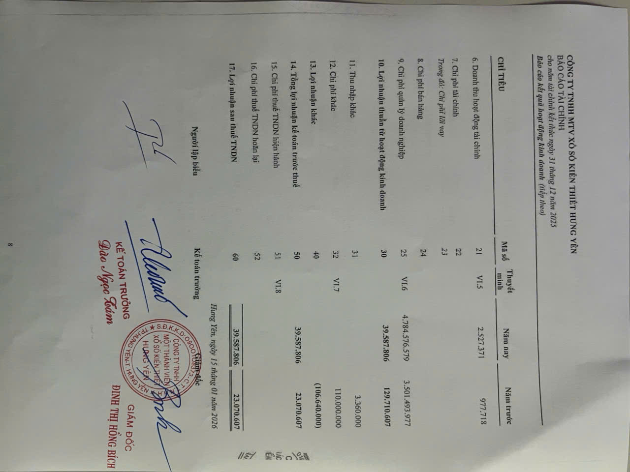 Báo cáo tài chính năm 2025